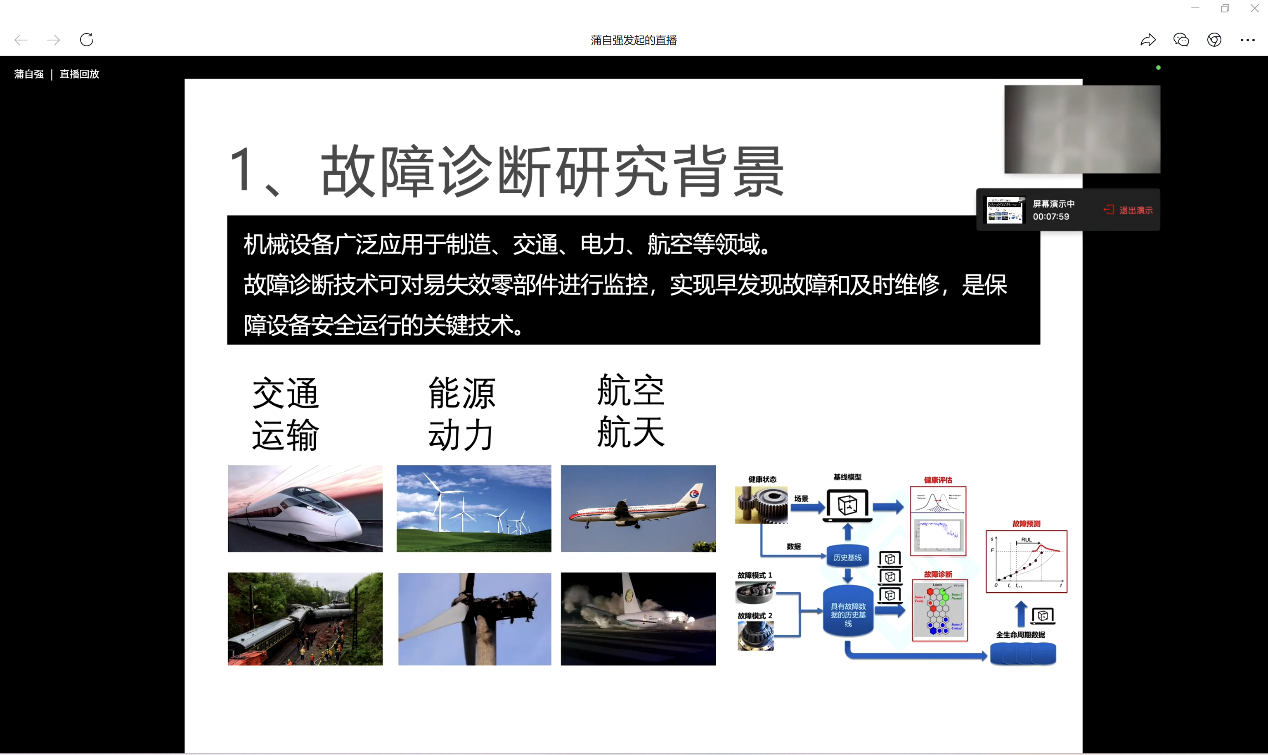 2025年11月3日,蒲自强老师在线上开展了“博士开讲啦”系列学术讲座——“融合物理反演与大模型语义的齿轮箱域泛化故障诊断”。蒲老师先以通俗比喻阐释故障诊断的核心价值,介绍传统诊断技术的繁琐与智能诊断的革命性突破;再重点讲解大模型与物理繁衍技术融合的创新点,分享特征对齐、模型优化等核心解决方案及92%的诊断准确率,展示技术多场景应用案例;最后分析当前研究面临的挑战,解答学生提问并邀请进一步交流。本次讲座系统梳理了故障诊断技术的发展脉络,深入解析了人工智能与工业工程融合的前沿趋势,既有理论高度又具实践价值。不仅拓宽了学生的专业视野,更激发了大家对科研创新的热情,为我校相关领域的人才培养与学术研究注入了新动力。