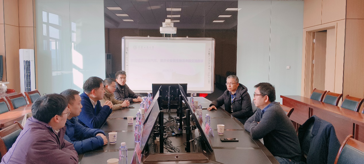 2026年1月6日,重庆长安股份有限公司物流技术高级副总工程师蒋宁、重庆长安民生物流股份有限公司包装事业部李红喜经理等一行5人到访我院,就深化产学研合作,建设汽车CKD包装实验室开展调研。学院院长李平、实验中心主任马斌、包装工程系主任张书彬参加会议。双方围绕实验室建设方案、技术研发方向、人才培养合作等核心问题展开深度研讨。