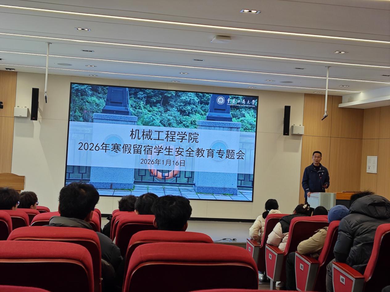 为加强寒假期间留宿学生的安全教育与管理,保障学生人身财产安全,2026年1月16日,必赢线路检测3003no1在卓智楼329报告厅组织召开2026年寒假留宿学生安全教育专题会。学院党委副书记陈春洁出席会议并讲话,学院全体寒假留宿本科生、研究生和辅导员老师参加了会议。