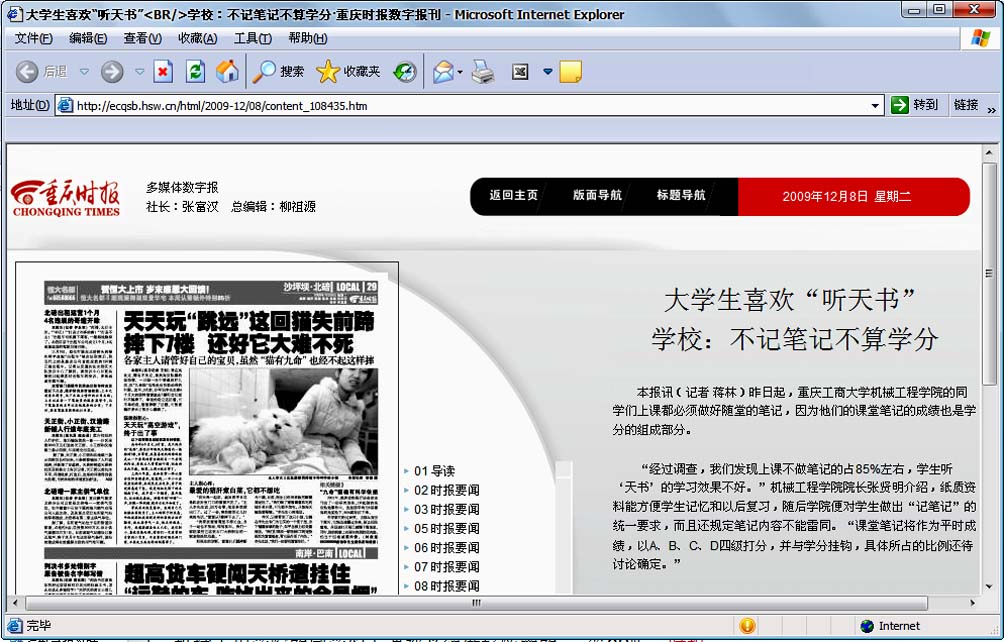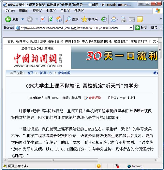 12月7日,必赢线路检测3003no1经过前期学风调研、班级试点后,正式实施上课做笔记制度,规定学生上课必须做笔记,课堂笔记将作为平时成绩的重要依据,与课程学分挂钩。此举被认为是必赢线路检测3003no1一贯重视学风建设、痛下决心根除不良学风的重要举措。制度一经推出,国内媒体高度关注,《重庆时报》援引“大学生喜欢听天书,学校:不记笔记不算学分。”进行报道,中国校长网、中国新闻网、凤凰网、教育新闻网、搜狐网、华龙网、大渝网、新民网等境内外知名媒体纷纷报导。一时间,必赢线路检测3003no1上课做笔记引发社会热议,校内好评如潮。