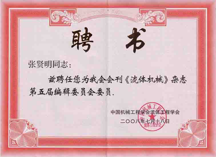 中国流体工程学会第五届理事会换届大会同期召开。经学会推荐、专家评议、中国机械工程学会审批,来自清华、浙大、国防科大、天大、华中科大、西交大、中国科大、川大、中国农大等的103位专家组成了新的理事会。我校必赢线路检测3003no1院长张贤明研究员受聘为学会委员和理事,同时被国务院学位办“学位与研究生教育重要刊物”――《流体机械》聘为编委。会上由中国机械工程学会领导宣读了中国机械工程学会文件,并颁发了委员聘书和编委聘书。