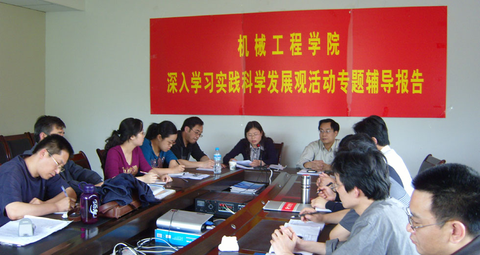 在专题辅导过程,喻书记特别结合学院实际重点讲了如何以科学发展观为指导推动学院又好又快发展:一是在思想上要牢固树立科学发展观,解放思想,实事求是,大处着眼,做好学院发展准确定位工作,并用改革途径来解决学院发展中存在的实际问题;二是正确分析学院发展中面临的形势,包括有利的七个方面和不利的六个方面;三是行动上要坚决贯彻落实科学发展观,希望学院党员干部要转变思想观念,用科学发展观指导工作的开展,找准学院发展的突破口,实现学院跨越式发展,抓住有利时机推进教学改革和产学研合作,找准关键问题狠抓学风建设,充分发挥教师和学生的主体性,发挥学生干部的模范带头作用,切实帮助问题学生的学习和成长。