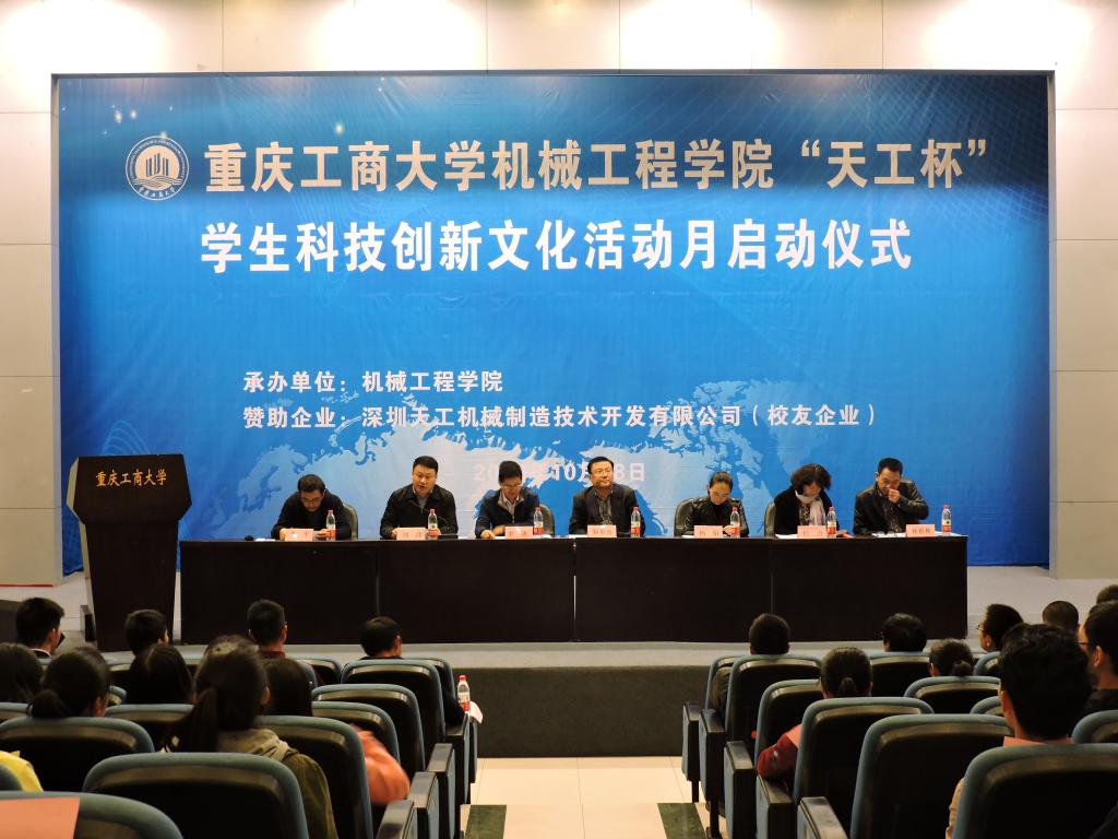 为展示必赢线路检测3003no1学科专业的学术创新实力,带动同学们积极参加科技活动月相关活动和各大赛事,营造我院科技创新的氛围。我院于2016年10月28日14:00在南岸校区博智楼7100举行了第十五届“天工杯”科技文化活动月启动仪式。本次活动邀请到场嘉宾有学校教务处处长靳俊喜、学生处处长罗勇、校团委书记杨娟,我院书记刘洋、院长杜力、副院长杨祖彬、学院院长助理李平及全院教职工和各年级学生代表参加了开幕式。