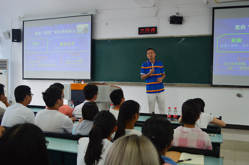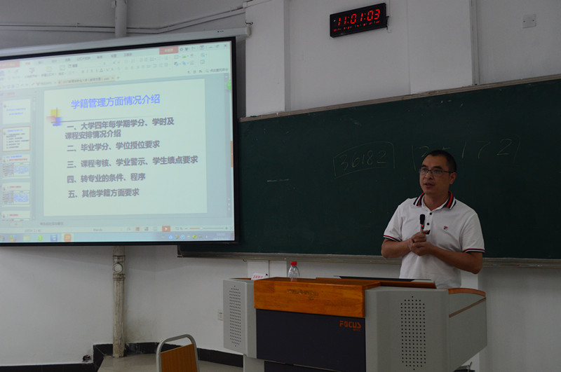 首先,学院全体院领导、各系主任和各科室负责人与全体新生见面,欢迎并鼓励新同学。接下来由杜力院长介绍学院的整体情况,让新生从学院历史、学科特色,重要活动,学院就业等方面了解学院;党总支书记刘洋为新生上了《关于大学生活的几点建议》为主题的第一堂思想政治课,从如何适应环境、专业学习、能力锻炼、政治素质要求、安全意识等方面为新生提供了一个全面和完善的大学学习和生活的建议。由分团委书记邢月军老师对学院的学生组织及学科竞赛做了简单介绍,鼓励学生全面发展,积极参与各项科技文体活动。最后学院教务办公室主任邱全奎老师详细介绍了本专业的课程设置、学习特点和要求,引导同学们尽快了解所学专业特点、未来就业前景及方向,尽快规划自己的职业生涯。下午,重庆许建业企业管理咨询有限公司执行董事许光毅为新生做了职业规划专题讲座,指导学生做好学业职业规划,调动了学生的学习热情,提升了专业自信心。