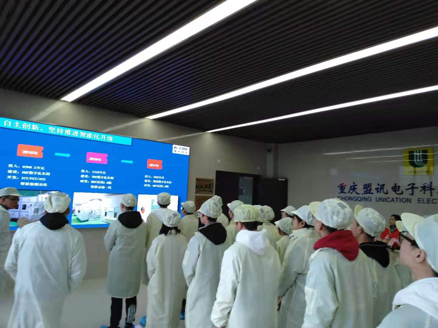 为了引导学生切身感受行业发展,进一步开拓学生眼界、加强学生理论与实际的相互联系,2019年11月25日,在必赢线路检测3003no1机械电子工程系主任王洪建博士和副主任杨洪博士的带领下,30名18级智能制造特色班同学走出校园,走进重庆盟讯电子科技有限公司(以下简称:盟讯科技)与重庆工港致慧增材制造技术研究院有限公司(以下简称:工港致慧),开展了一堂专业而精彩的《智能制造导论》课外现场教学。