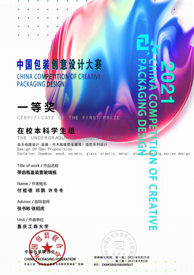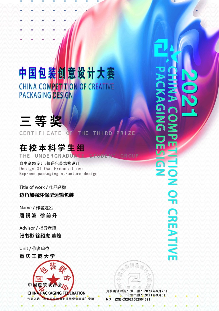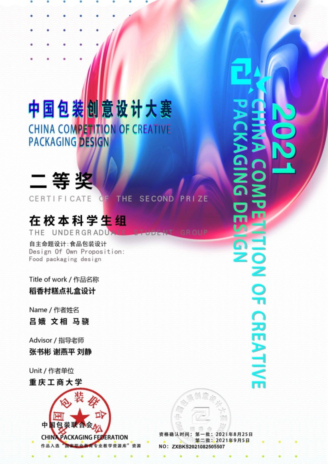 包装创意设计大赛是由中国包装联合会举办,是中国包装联合会贯彻落实国务院对包装高质量发展战略和对中国包装创新创意设计发展的决策部署,是促进中国包装大国迈向包装强国的一个举措。大赛自2010年举办至今,已经连续举办了十一届,是当前中国包装行业、包装教育界、视觉平面设计教育界备受瞩目的专业竞赛活动,也是教育部、国家职业教育专业教学资源库建设的重要组成部分,学生通过参与该项比赛专业素养得到磨砺和提升,扩大了包装工程专业在专业学科竞赛方面的影响力。