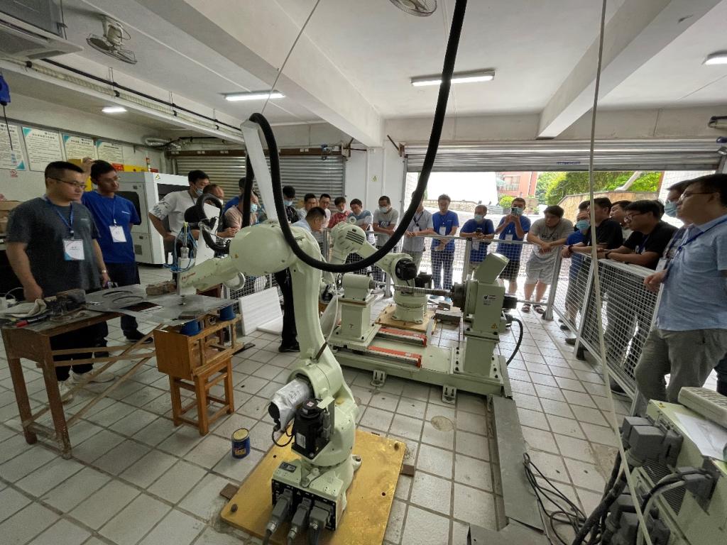在本次交流培训中,必赢线路检测3003no1机器人与激光智能制造研究所所长王洪建副教授代表学院介绍了我校概况和招生情况,以及必赢线路检测3003no1办学历史和学科专业构成。接下来的培训是以案例和实作相结合的方式进行,王所长从工业机器人应用总体要求和运行安全规范要求出发,双方就双机器人激光加工系统、机器人高速切割技术、机器人拆装平台、机器人驱动器、机器人编码器、机器人日常维护等内容进行了交流探讨。最后再用写字方式的轨迹写法,演示了激光切割完成“重”字,写字方式完成“重庆”两个字的操作。