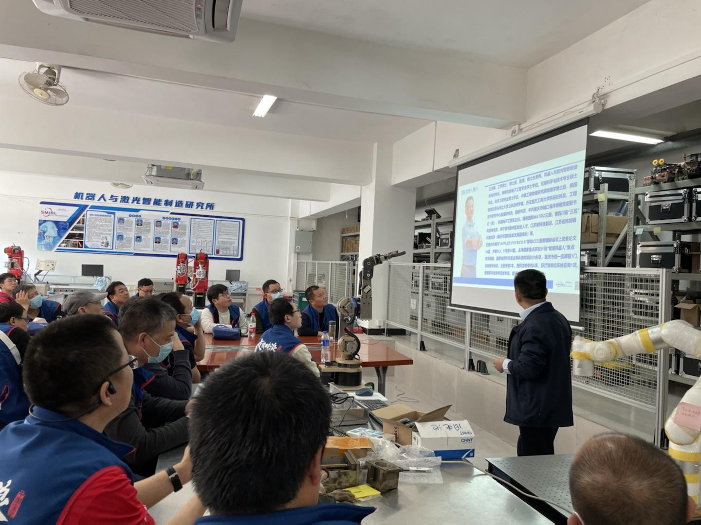 之后研究所师生给中国宝武集团一线员工展示了激光清洗、激光切割等加工工艺,以及机器人的操作和日常维护过程。经过系统的培训过后,中国宝武集团一线员工对研究所设备进行实际操作。实际操作过程中学习氛围浓厚,就机器人基本结构、控制、编程等话题进行了现场讨论。