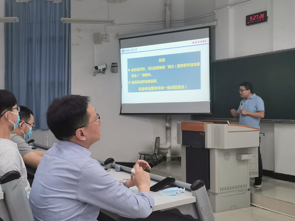 首先,学院院长杜力教授从教育部专业目录中学科门类、一级学科、二级学科讲清楚学院所在学科和专业地位,以及为主动应对新一轮科技革命与产业变革,支撑“中国制造2025”等一系列国家战略,教育部积极推进新工科建设,促使学院积极开展课程设置和教学改革,主动适应国家战略和上级要求的专业分流背景,到学院办学历史、专业设置与专业发展、课程设置与安排、师资队伍、人才培养特色、办学成效等方面为同学们别开生面地上了一堂专业教育课。