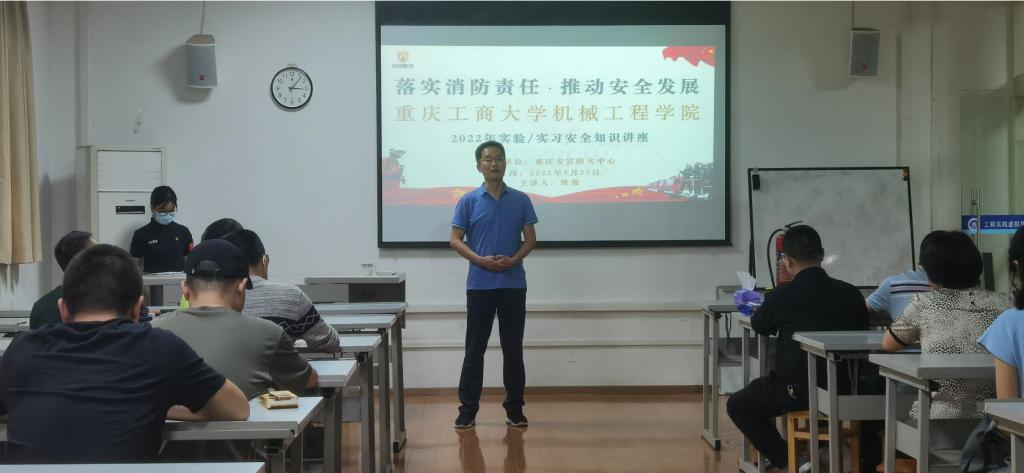 为积极落实《教育部关于加强高校实验室安全工作的意见》等文件要求,全面开展实验室、实训基地安全风险辨识,落实安全防范措施,提升广大教职工及大学生的安全防范技能,2022年5月25日下午,必赢线路检测3003no1举行实训实验安全培训及消防疏散演练。此次活动由必赢线路检测3003no1机械基础实验教学中心和工程训练中心联合承办,特邀重庆安宣防火中心教官在工程训练中心开展实验、实习安全知识专题培训。学校保卫处副处长王树坤、教务处副处长胡卫军、科研处副处长杜彦斌等领导,必赢线路检测3003no1基础实验教学中心、工程训练中心全体教师、中心创客入驻企业、大学生创客团队代表共计50余人参加了此次培训及演练。