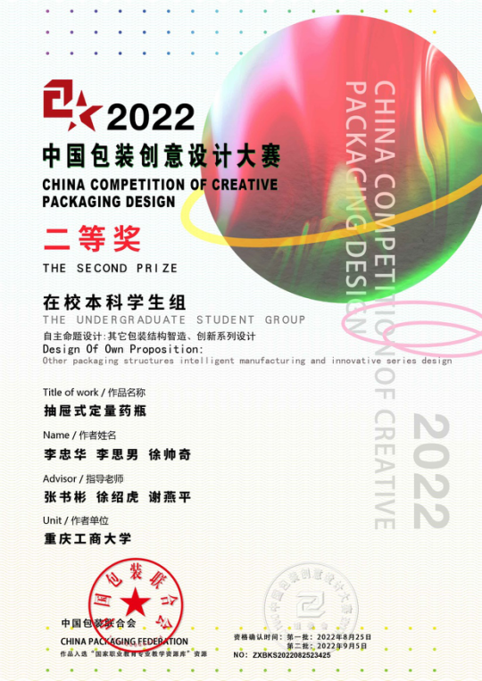 包装创意设计大赛是由中国包装联合会举办,是中国包装联合会贯彻落实国务院对包装高质量发展战略和对中国包装创新创意设计发展的决策部署,是促进中国包装大国迈向包装强国的一个举措。大赛自2010年举办至今,已经连续举办了十二届,是当前中国包装行业、包装教育界、视觉平面设计教育界备受瞩目的专业竞赛活动,也是教育部、国家职业教育专业教学资源库建设的重要组成部分,学生通过参与该项比赛专业素养得到磨砺和提升,扩大了包装工程专业在专业学科竞赛方面的影响力。