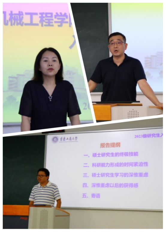 在专业教育方面,院长杜力对学院的基本情况和历史沿革加以介绍,对新生提出三点建议,一是积极调整心态,研究生拥有学生和科研工作者的双重身份,唯有自律和自觉才能有所收获,同时要有在学术道路上面对孤独和失败的勇气;二是养成读文献的习惯,注重平时积累,善于利用各种资源和途径汲取养分;三是对待学术要严肃,禁止一切学术不端行为。李院长从学科定位、研究领域、实验条件、导师团队等方面介绍了机械工程学术学位和机械专业学位培养点的基本情况,特别强调了实验室准入规则和实验设备使用要求,叮嘱同学们重视实验室安全。