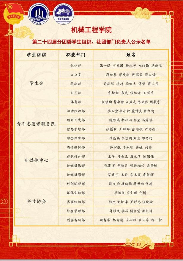 希望新任部门负责人能够恪尽职守,勇于担当,全心全意为同学服务,共同推动四大组织和三大社团的发展再上新台阶。同时也感谢所有参与本次选拔的同学对学生组织工作的支持!