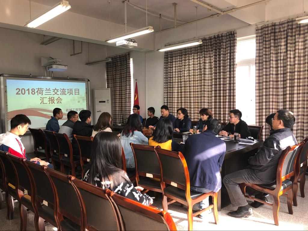 其次,本次荷兰交流项目的带队老师李永亮就本次项目的概况进行了汇报。本次项目必赢线路检测3003no1共派专业课教师1名、包含三个年级四个专业的学生10名于2018年1月27号至2月10号赴荷兰上艾瑟尔省兹沃勒市的文德斯汉姆应用技术大学,参加为期两周的专业交流项目,取得了圆满成功。本次项目是根据2017年2月必赢线路检测3003no1与文德斯汉姆大学签订的长期交流合作协议,双方师生围绕“第八届全国大学生机械创新设计大赛”的选题展开的专业项目交流,通过前期双方的协作,今年五月份,荷兰文德斯汉姆大学将派出6位机械专业学生与我院10名学生共同组成参赛团队,参加第八届全国大学生机械创新设计大赛重庆赛区的比赛。